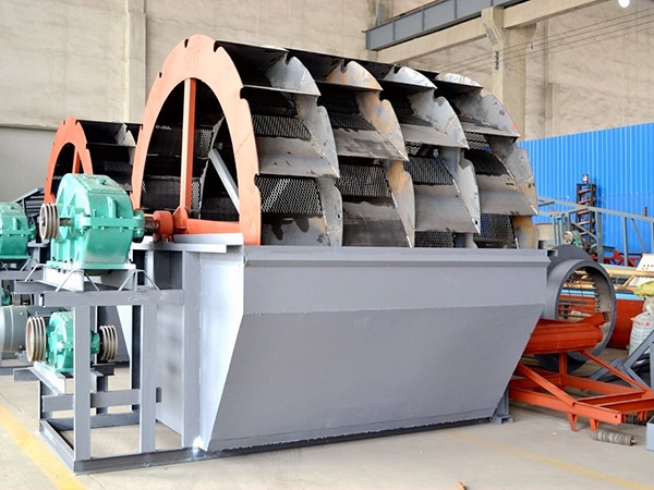 在輪斗洗砂機(jī)的工作過程中,砂石的翻滾和研磨主要依靠輪斗的旋轉(zhuǎn)來實(shí)現(xiàn)。具體來說,當(dāng)砂石通過給料設(shè)備進(jìn)入洗砂機(jī)的洗槽內(nèi)后,輪斗開始旋轉(zhuǎn)。